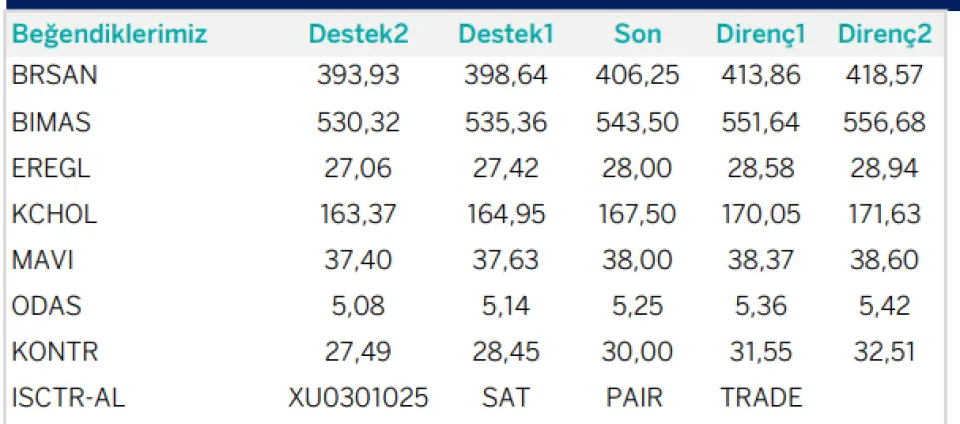 Böylece Garanti BBVA tarafından 10 Ekim 2025 tarihinde paylaşılan yatırım fikirleri listesinde, BRSAN, BIMAS, EREGL, KCHOL, MAVI, ODAS, KONTR ve ISCTR olmak üzere toplam 8 hisse yer almış oldu.