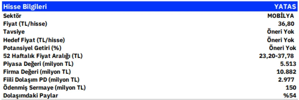 YATAS bu yıl 3. çeyrek bilançosunda 123.027.000 TL zarar açıklamıştı. Şirketin finansal tablolarını inceleyen Gedik Yatırım hisseye hedef fiyat vermedi ancak 2025’in üçüncü ve dördüncü çeyreklerinde talepte toparlanma görülmüş, rakiplerin zayıflamasıyla birlikte pazar payı kazanımı marj görünümünü desteklemiştir, tespitinde bulundu.