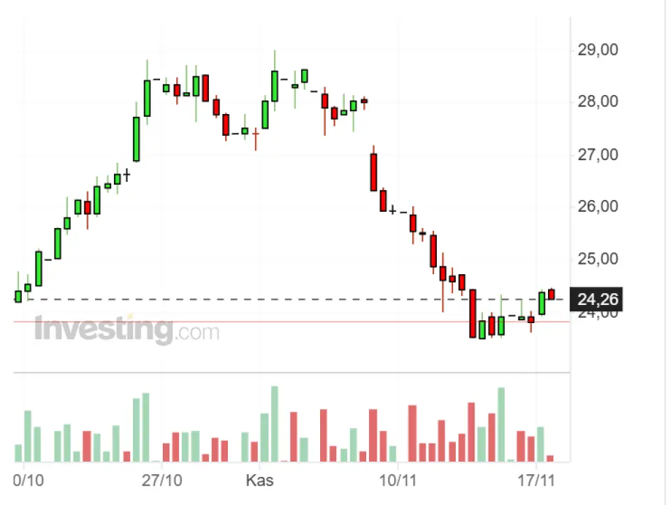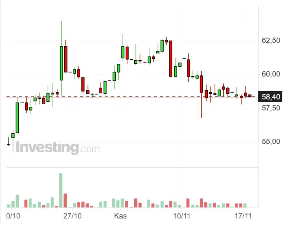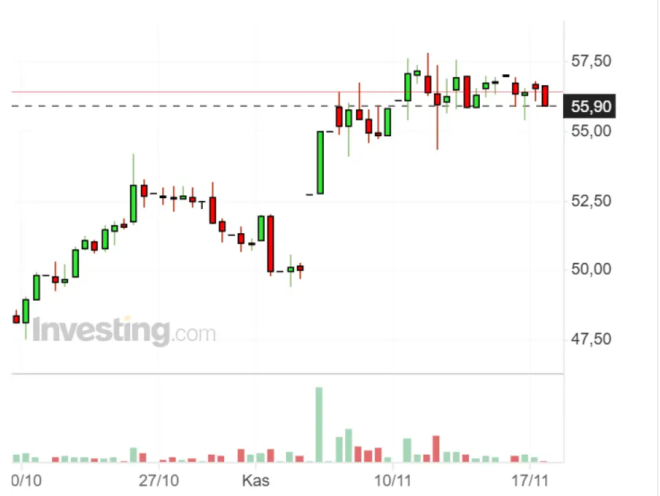 Listede yer alan hisselerin 1 aylık değişim grafiği