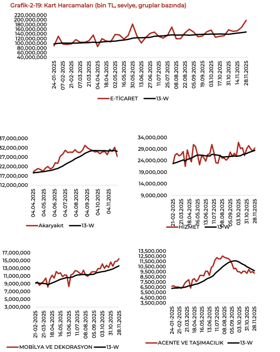 - "Kart harcamalarına baktığımızda Ekim'e nazaran hareketlerin görece sınırlı olduğu izlerken Kasım ayı boyunca gerçekleşen yoğun kampanya döneminin dalgalanma ve sektörel bazlı hareketlerde etkisi olduğunu unutmamakla birlikte Kasım ayının son haftasının kampanya etkisinin en yoğun olduğu hafta olduğunu görmekteyiz. Kasım enflasyonunun geneline baktığımızda gıda grubu hariç kampanya etkisinden söz etmenin mümkün olduğunu görmekteyiz."