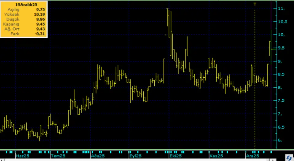 MTRYO 2 aydır yatay trendde devam ediyordu. Hisse, Eylül ayı sonunda 10,31 TL fiyattan düşüşe geçti. 7,90 -8 TL fiyatta tutunan hisse 2 ay kadar bu fiyatlarda güç topladı. Geçtiğimiz hafta aniden hareketlene hisse 2 gün üst üste tavan yaparak, 10,19 TL fiyata kadar primlendi ve en yakın zirvesini kırmayı denedi. Ancak gelen satış basıkı hisseye güç kaybettirdi ve hisse, 9,45 TL kapattı.