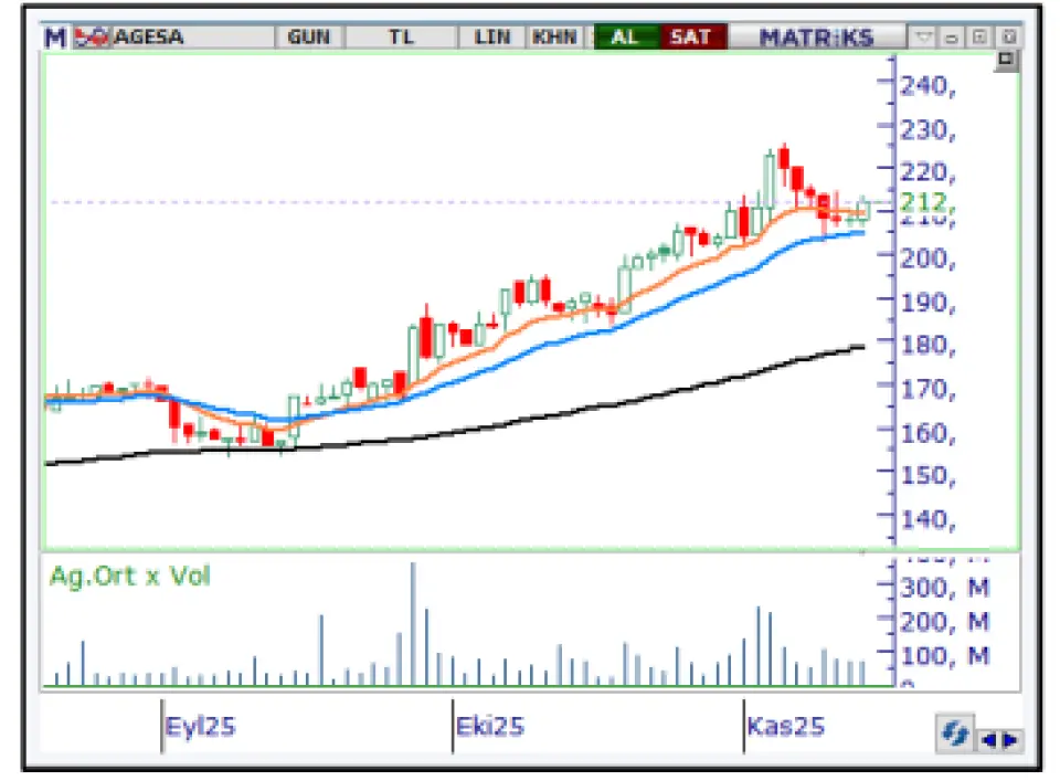 AGESA hissesi için açıklanan hedef fiyat 216,60 TL. Bununla birlikte şirketin 2025 yılının üçüncü çeyreğinde açıkladığı net dönem karı 4.095.045.000 TL Şirket geçen yılın aynı döneminde 1.990.143.000 TL kâr açıklamıştı. 2025 yılının üçüncü çeyreğinde ise özkaynaklar 8.604.021.000 TL olarak açıklandı.