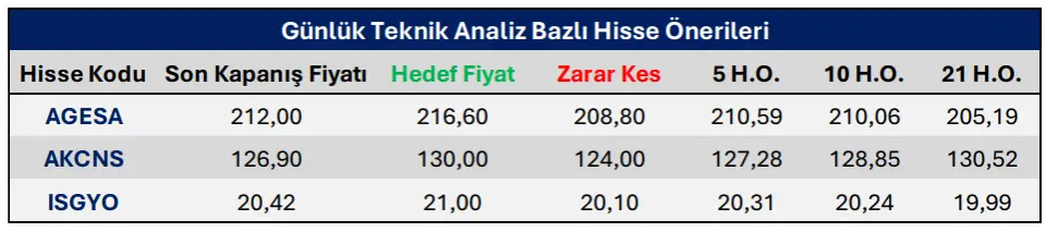 PhillipCapital, 17 Kasım 2025 tarihine ait günlük bültenini yayınladı. Yayınlanan bültende 3 farklı hisse için teknik analiz hisse önerileri paylaşıldı. PhillipCapital tarafından paylaşılan teknik analiz hisse önerileri, AGESA, AKCNS ve ISGYO hisseleri için yapıldı. Paylaşılan önerilerin detaylarına bakacak olursak;