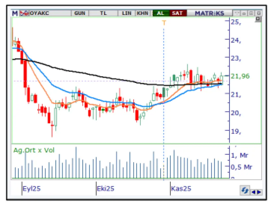 OYAKC hissesi için açıklanan hedef fiyat 22,60 TL. Bununla birlikte şirketin 2025 yılının üçüncü çeyreğinde açıkladığı net dönem karı 7.282.247.000 TL Şirket geçen yılın aynı döneminde 7.107.015.000 TL kâr açıklamıştı. 2025 yılının üçüncü çeyreğinde ise özkaynaklar 59.016.862.000 TL olarak açıklandı.