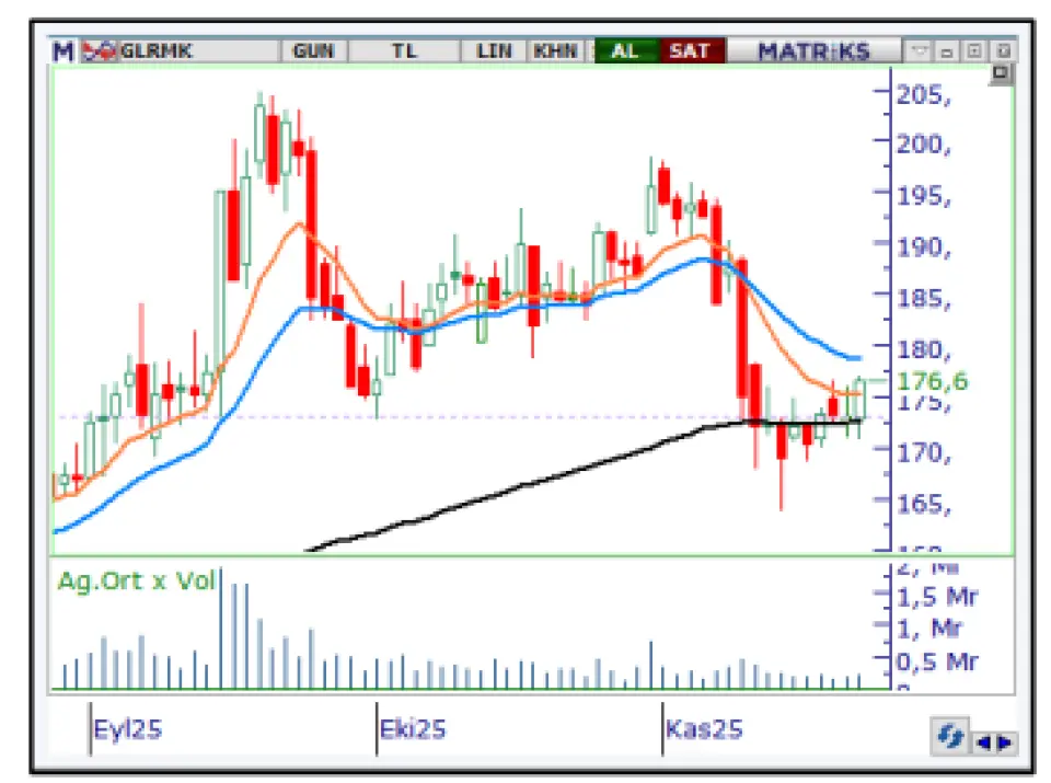GLRMK hissesi için açıklanan hedef fiyat 182,60 TL. Bununla birlikte şirketin 2025 yılının üçüncü çeyreğinde açıkladığı net dönem karı 3.780.837.000 TL Şirket geçen yılın aynı döneminde 3.554.083.000 TL kâr açıklamıştı. 2025 yılının üçüncü çeyreğinde ise özkaynaklar 16.416.486.000 TL olarak açıklandı.