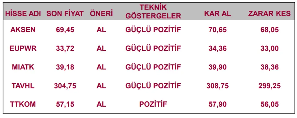İlgili öneri listesinde toplam 5 hisse yer aldı:- AKSEN