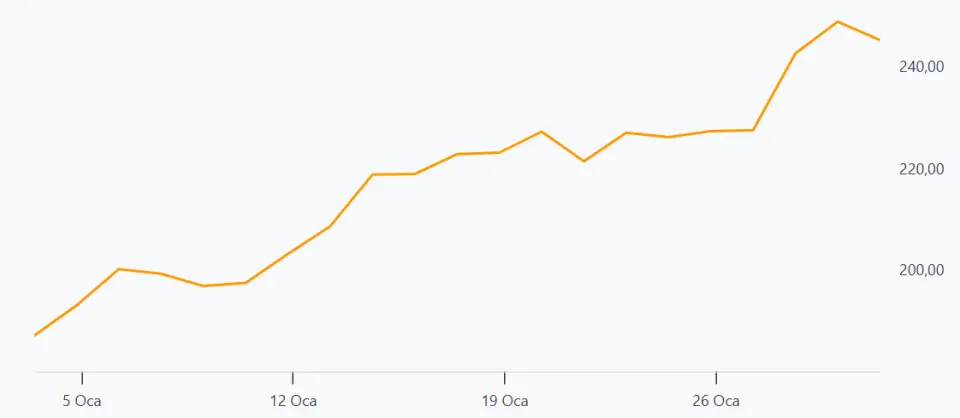 TUPRS 1 aylık değişim grafiği