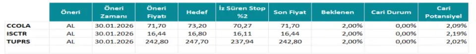 Aracı kurum tarafından paylaşılan "haftanın hisseleri" listesinde 3 hisse yer aldı. Bu hisseler CCOLA, ISCTR ve TUPRS: