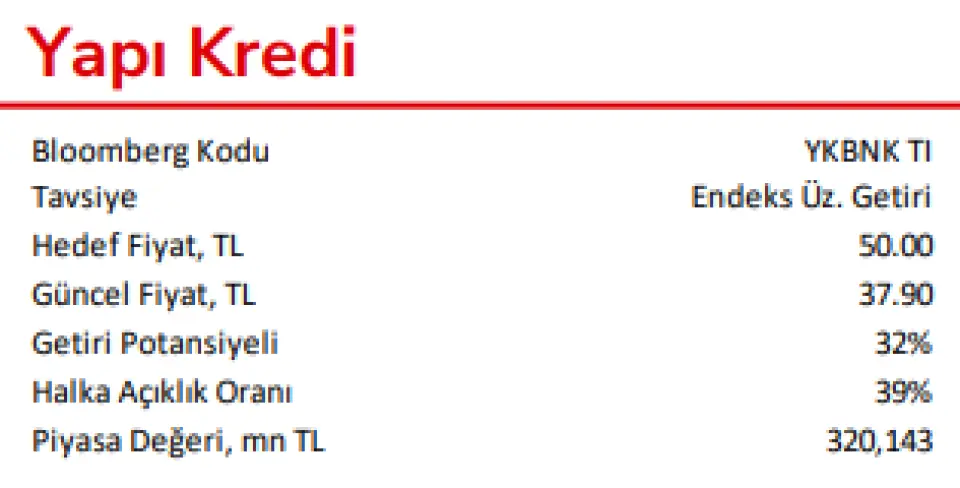 Olumlu tarafta Yapı Kredi, kredi kartı borç yapılandırma planına verdiği hızlı tepkiyi 2026'daki aktif kalitesi için bir avantaj olarak görmektedir. Modelimize göre, net kredi riski maliyeti 150bp-175bp aralığındaki hedefin biraz üzerinde olacaktır. Yapı Kredi, 2026 için de başlangıçta benzer bir aralığı öngörmektedir.