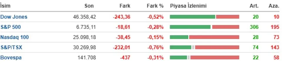 ''Küresel piyasalar tarafında, devam eden hükümet kapanmasını göz ardı eden yatırımcılar yılın üçüncü çeyrek kazanç dönemine odaklanmış durumda. ABD borsalarında FOMC tutanaklarının ardından yaşanan ralli devam ederken, S&P 6.764 ve Nasdaq 23.062 seviyelerine ulaşarak yeni rekorlara imza atsa da günün kapanışlarını satıcılı olarak gerçekleştirdiler. Avrupa borsalarında ise karışık görünüm izlendi.''