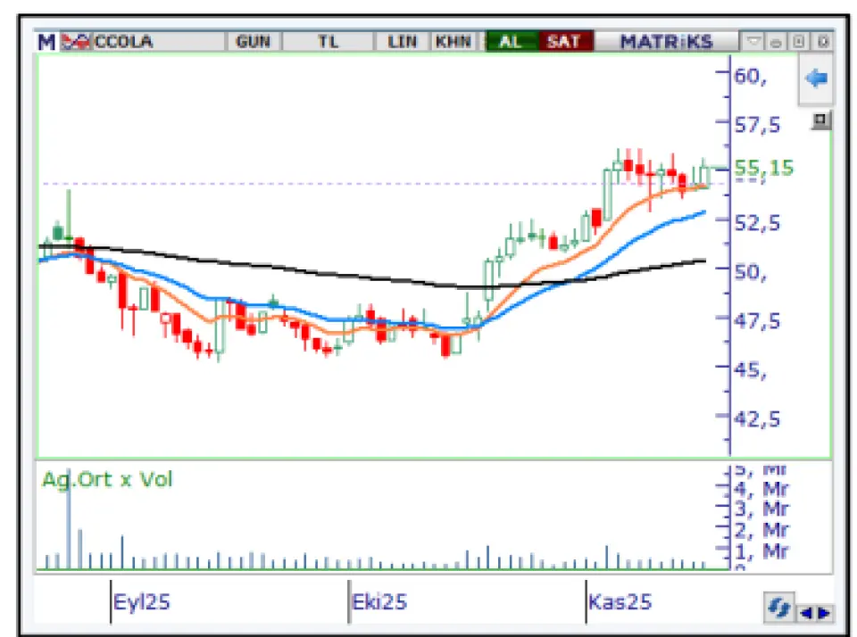 CCOLA hissesi için açıklanan hedef fiyat 56,60 TL. Bununla birlikte şirketin 2025 yılının üçüncü çeyreğinde açıkladığı net dönem karı 14.064.768.000 TL Şirket geçen yılın aynı döneminde 19.020.720.000 TL kâr açıklamıştı. 2025 yılının üçüncü çeyreğinde ise özkaynaklar 72.866.518.000 TL olarak açıklandı.