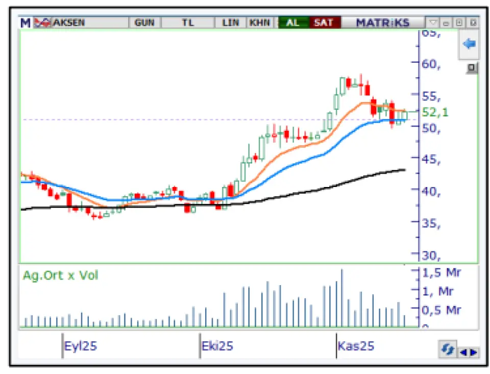 AKSEN hissesi için açıklanan hedef fiyat 53,90 TL. Bununla birlikte şirketin 2025 yılının üçüncü çeyreğinde açıkladığı net dönem karı 2.409.929.000 TL Şirket geçen yılın aynı döneminde 3.070.815.000 TL kâr açıklamıştı. 2025 yılının üçüncü çeyreğinde ise özkaynaklar 53.334.205.000 TL olarak açıklandı.