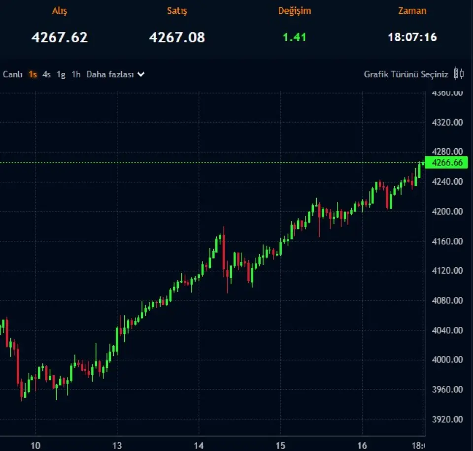 Dün ABD-Çin ilişkilerindeki risklerin etkisiyle ons altın 4.100 doların üzerinde işlem görürken, gncel olarak 4.250 USD seviyesinden işlem görüyor. Kapalıçarşı’da yatırımcılar özellikle gram ve çeyrek altın fiyatlarını yakından takip ediyor. Teknik olarak 4.000 dolar civarı destek olarak izlenirken, kısa vadede 4.250 ve 4.300 dolar direnç seviyeleri ön plana çıkıyor. Analistler, fiyatlardaki geçici dalgalanmaların alım fırsatı yaratabileceğine dikkat çekiyor.