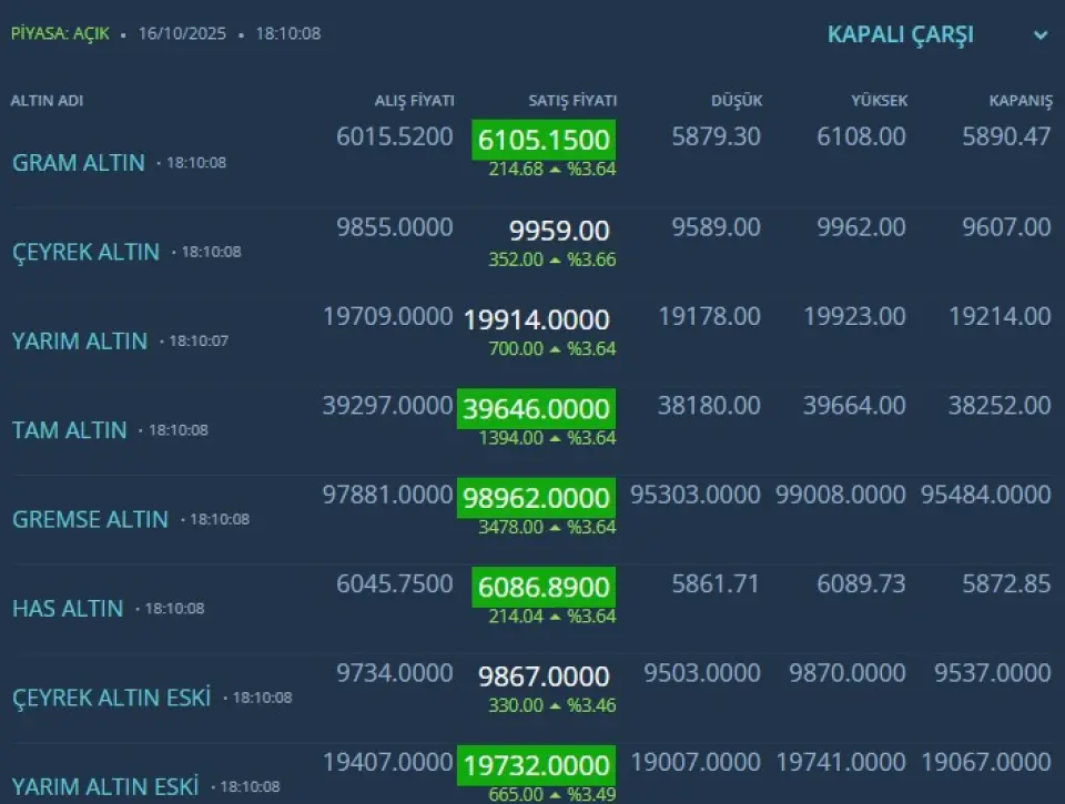 Küresel jeopolitik riskler ve FED’in faiz indirimine kapıyı açık bırakması altına olan talebi canlı tutuyor. Kapalıçarşı altın fiyatları ise yerli yatırımcılar tarafından merakla takip ediliyor. Altın zirvedeki yerini koruyacak mı? İşte altında son durum…