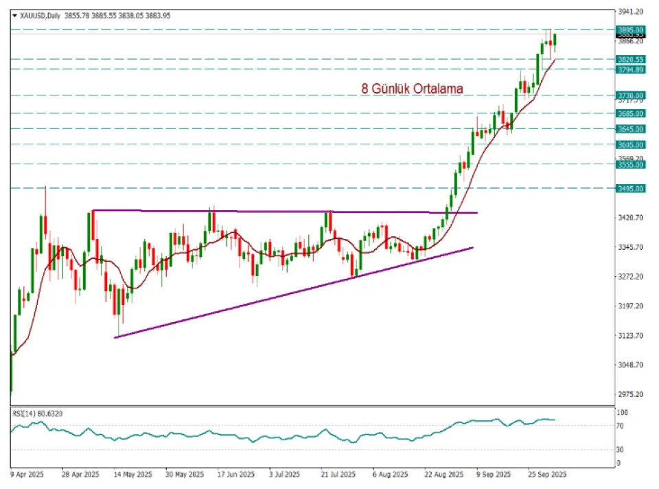 Olası ataklarda ilk direnç, rekor bölge olan 3895 seviyesidir.
