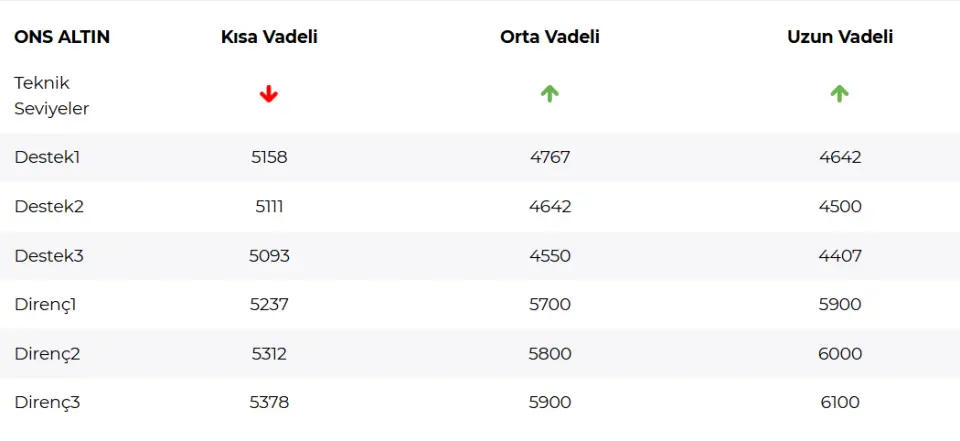 Ons altın zirveden başlayan sert geri çekilme sonrası 35 periyotluk üstel Envelopes altında harekete devam ediyor. Kısa vadeli görünümüne negatif devam eden altın fiyatları için 5111-5093 bölgesi artık satış baskısının yoğunlaşabileceği bölge olarak takip edilebilir. Aşağı yönlü hareketin devamında 4888 seviyesi takip ediliyor olacak. Alternatif durumda bu bölgenin geçilmesi ile 522-5249 bölgesi gündeme gelebilir.
