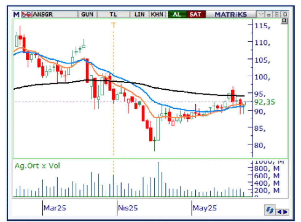 "Cuma günü seans içinde kısa vadeli ortalamasının altına sarkan ancak gün içerisinde tepki alarak yeniden yükselen ANSGR günü kısa vadeli ortalamasının üzerinde tamamlamayı başarabildi. Hissede bugün 92,85 TL seviyesi üzeri tutunmalarda alımlar güç kazanabilir."Hedef Fiyat: 94,80 TL