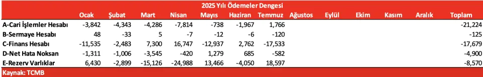"Merkez Bankası'nca bugün duyurulan 2025 Temmuz ayı Ödemeler Dengesi verilerine göre;"