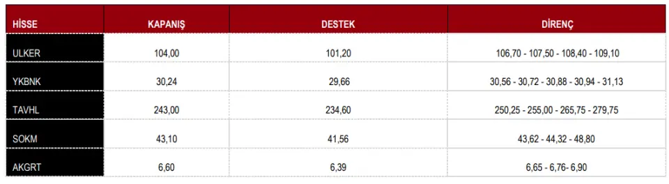 ICBC Yatırım tarafından 23 Ekim 2025 tarihli günlük bültende yer alan günün öne çıkan hisse önerileri listesinde ULKER, YKBNK, TAVHL, SOKM ve AKGRT hisseleri yer almış oldu.