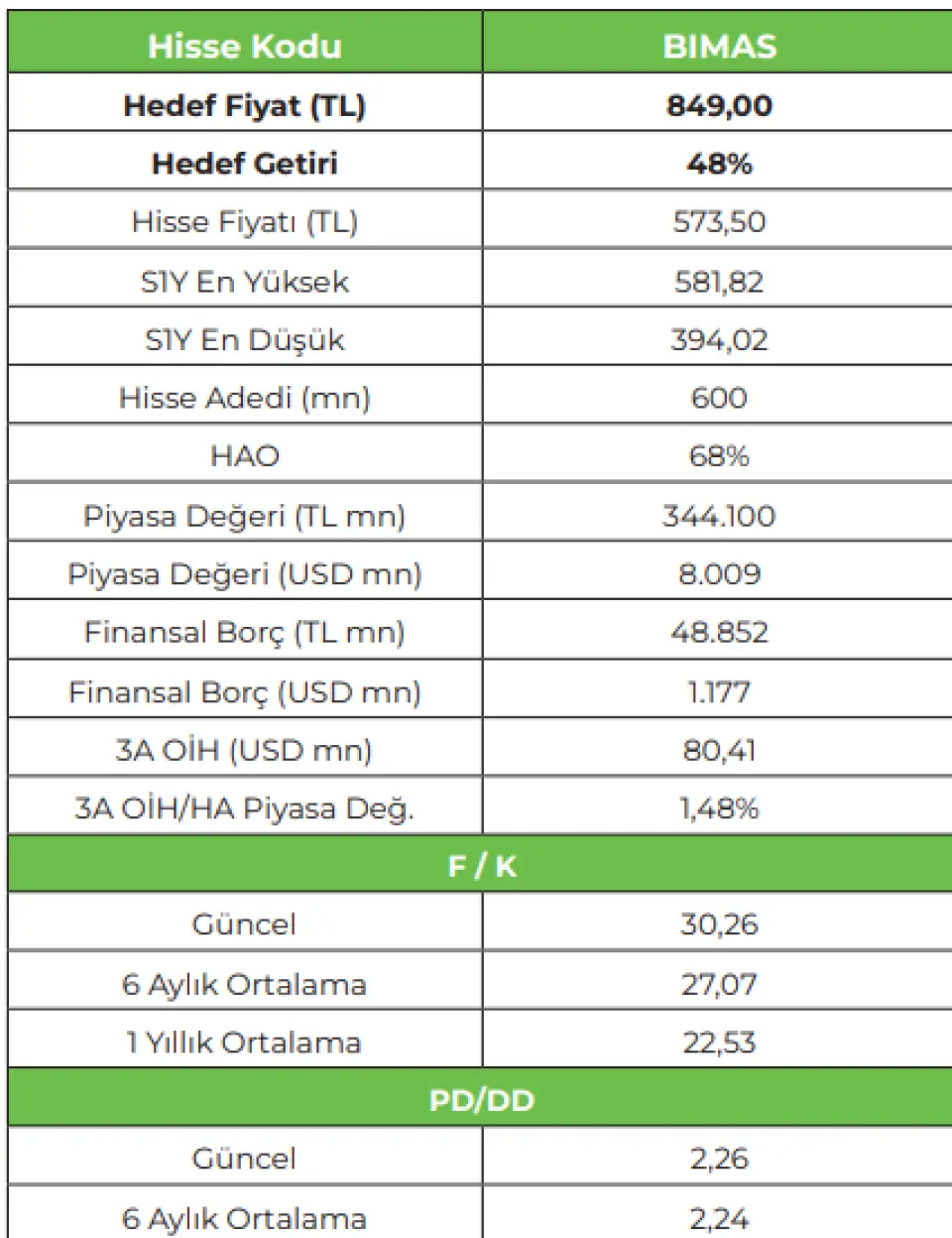 İnfo Yatırım BIMAS Hedef Fiyat: 849,00 TL (Eski Fiyat: 823,00), %48 Getiri Potansiyeli.