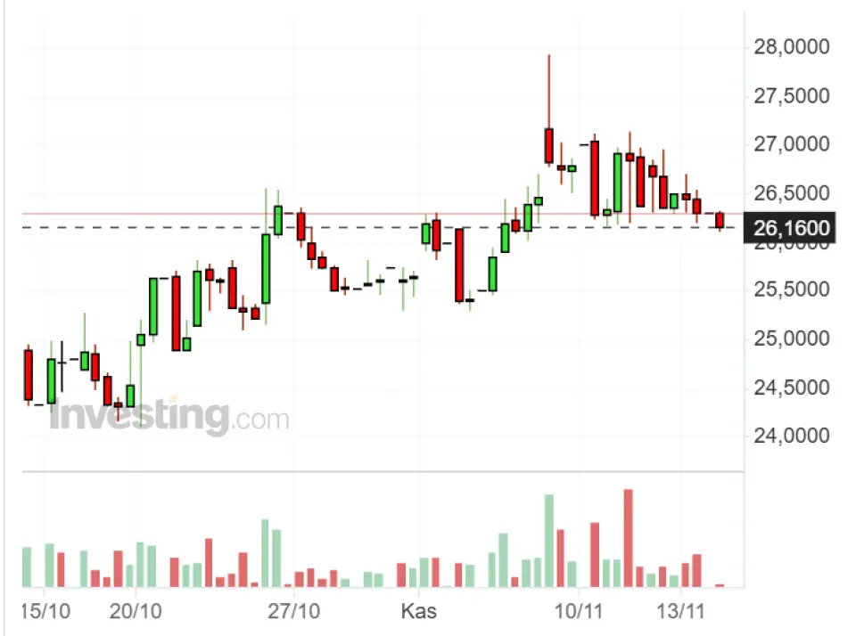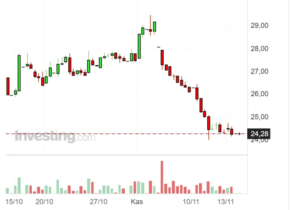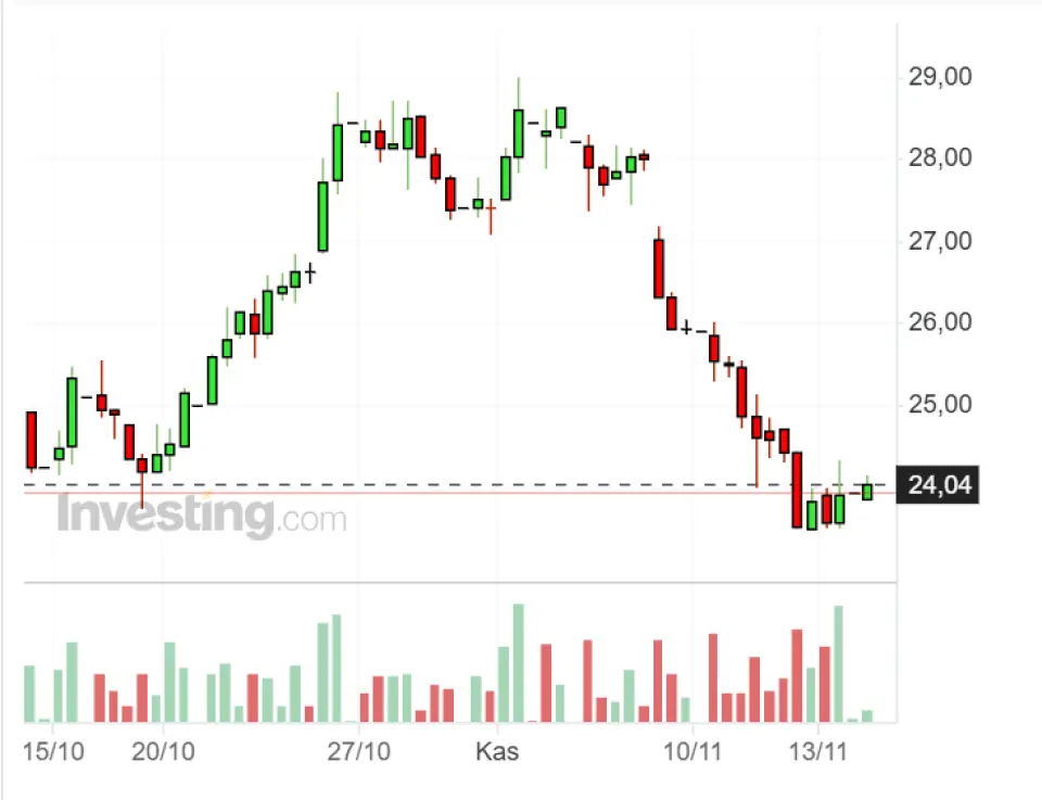 Listede yer alan hisselerin 1 aylık değişim grafiği