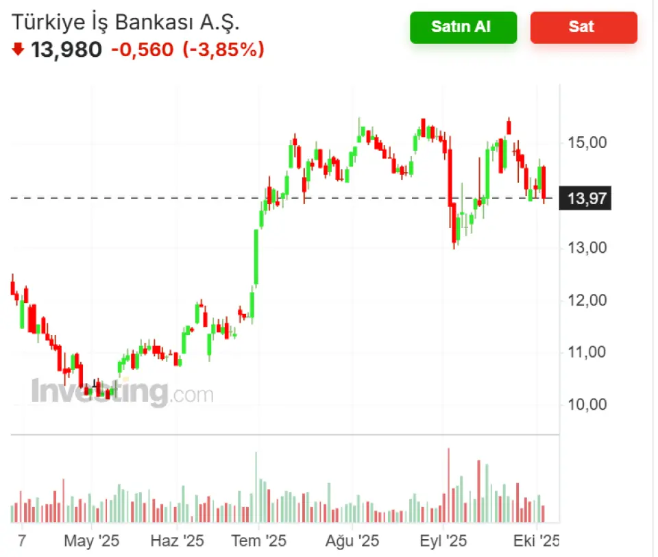 Türkiye İş Bankası A.Ş. (ISCTR), 2025 yılı 2.çeyrek bilançosunda net karını 30.038.483.000 TL olarak açıkladı. Net kar 2024 yılının 2. çeyreğinde 29.330.577.000 TL olarak açıklanmıştı.Emlak Konut Gayrimenkul Yatırım Ortaklığı A.Ş. (EKGYO), 2025 yılı 2.çeyrek bilançosunda net karını 9.434.205.000 TL olarak açıkladı. Net kar 2024 yılının 2. çeyreğinde 1.413.934.000 TL olarak açıklanmıştı.