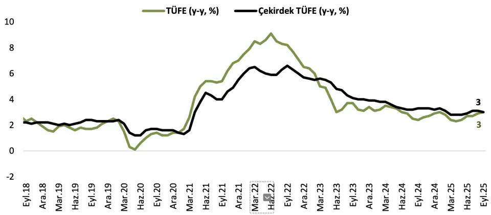 Eylül ayında TÜFE, yıllık bazda %3.1 olan beklentilerin altında %3 artarken, aylık bazda ise %0.4 olan beklentilerin altında %0.3 gerçekleşti. Çekirdek TÜFE de beklentilerin altında yıllık bazda %3; aylık bazda ise %0.2 artış kaydetti.
