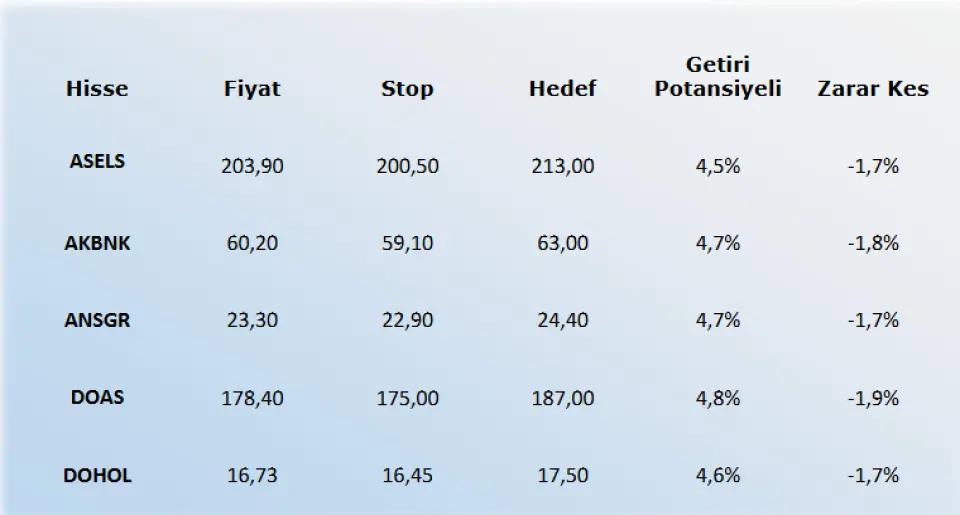 Böylece aracı kurumun model portföy listesinde ASELS, AKBNK, ANSGR, DOAS ve DOHOL yer almış oldu.