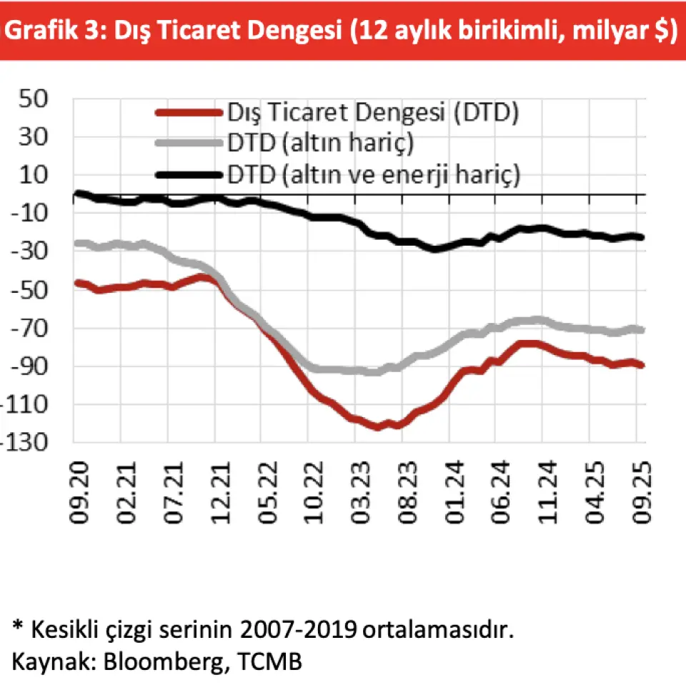 Dış ticaret açığı yılın ilk dokuz ayında 67,0 milyar $ olurken, 12 aylık birikimli olarak 87,6 milyar $’dan 89,3 milyar $’a yükseldi.