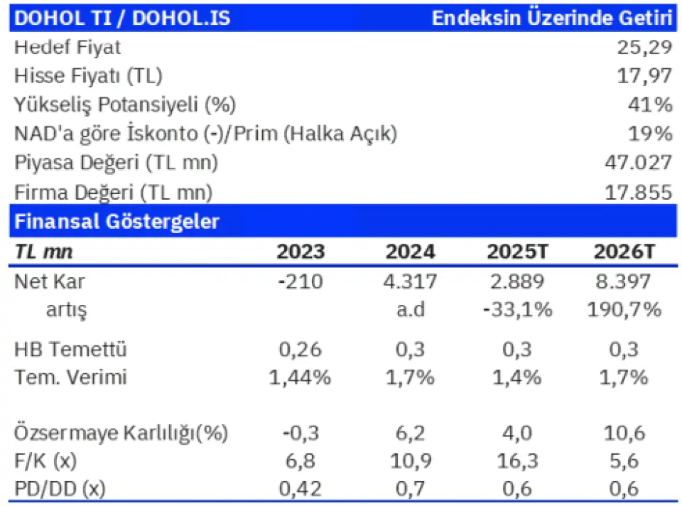 Doğan Holding Hissesine 25,29 TL Hedef Fiyat Verildi %41 Kazanç Potansiyeli