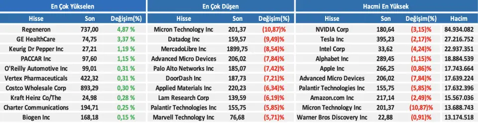 Nasdaq 100 En Çok Yükselen / Düşenler