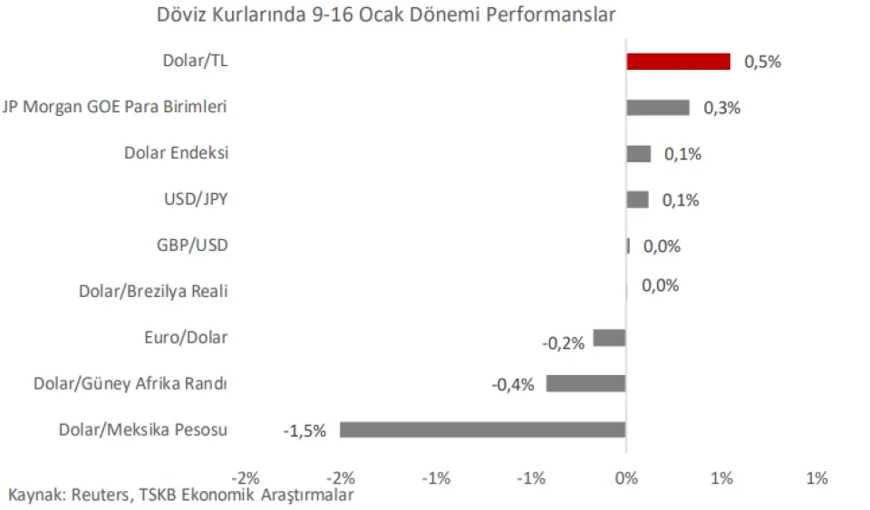 TSKB, haftalık bülteninde global piyasalardaki gelişmelere yer verdi. Aracı kurumun açıklaması aşağıdaki gibi oldu:Küresel risk iştahı bu hafta pozitif seyrini sürdürdü. Dördüncü çeyrek bilanço verileri açıklanmaya başlarken, rakamlar özellikle ABD ekonomisindeki dirence işaret etti. ABD'de büyük teknoloji şirketlerinin hisse fiyatlarında gerileme görülse de, ekonomik faaliyete duyarlı daha küçük ölçekli şirket hisselerinde yükseliş görüldü ve bu durum hisselerde rotasyona işaret etti. Artan jeopolitik gerilimlerle yükseliş kaydeden petrol fiyatları, ABD Başkanı Donald Trump'ın İran'a yönelik söyleminin yumuşamasıyla hafta sonuna doğru bir miktar geriledi.