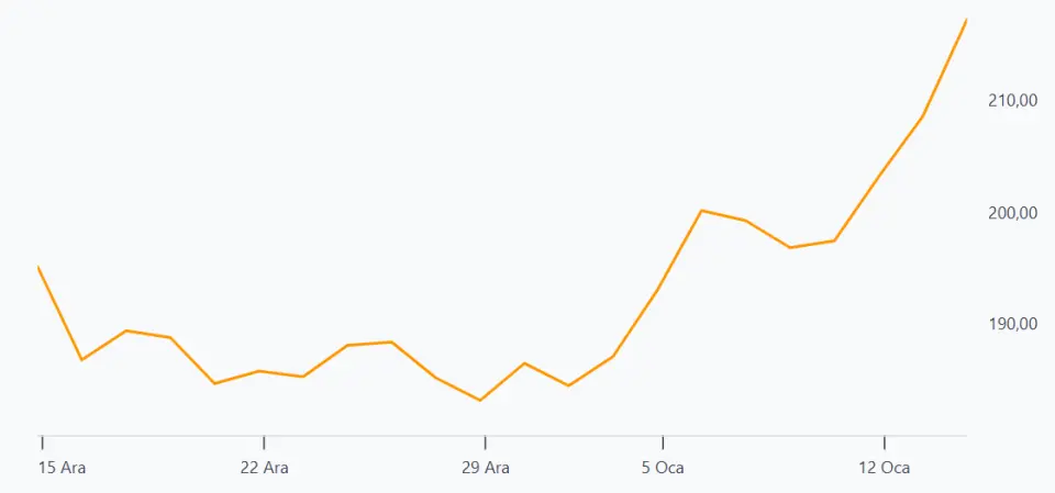 TUPRS 1 aylık değişim grafiği