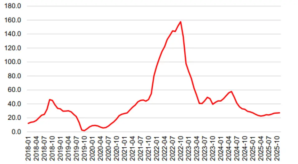 Beklenenden iyi gelen sonuç, taze meyve ve sebze fiyatlarındaki düşüş sayesinde, esas olarak gıda grubundan kaynaklandı. Mevsimsellikten arındırılmış aylık trend enflasyonunun %1,4-1,5 aralığında olduğunu hesaplıyoruz, bu da üç aylık ortalamaya göre bir iyileşme olduğunu gösteriyor. Ayrıca, ortalama medyan fiyat artışı Kasım ayında %1,0 olarak gerçekleşti, geçen yılın aynı ayında ise %1,1 olmuştu.