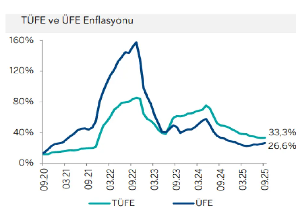 Aralıkta baz etkisi nedeniyle yıllık enflasyondaki düşüş tekrar kesintiye uğrayabilir. Enflasyon üstünde yeni bir risk oluşmadığı ve TCMB’nin sıkı para politikasını devam ettireceği varsayımı ile 2025 sonunda yıllık TÜFE enflasyonunun %30’a ineceğini tahmin ediyoruz. Ancak eylül TÜFE verisi enflasyon tahminimiz üstünde yukarı yönlü riske işaret ediyor. Enflasyon görünümünü ve TCMB’nin ara enflasyon hedeflerini dikkate alarak TCMB’nin politika faizi indirim hızını düşüreceğini öngörüyoruz."