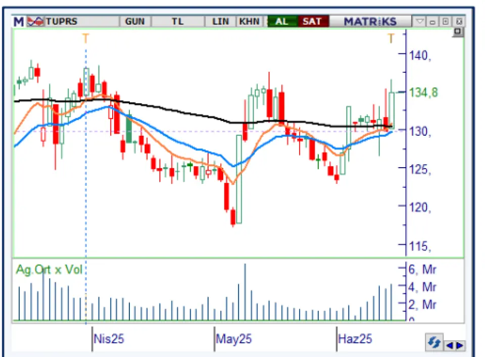 "Dün gerçekleşen güçlü alımlarla birlikte 200 günlük hareketli ortalamasını aşan TUPRS hissesinde bugün 132,60 TL seviyesi üzerinde kalıcılığın korunması durumunda yukarı yönlü hareketlerin güç kazanabileceğini değerlendiriyoruz."Hedef Fiyat: 138,20 TL