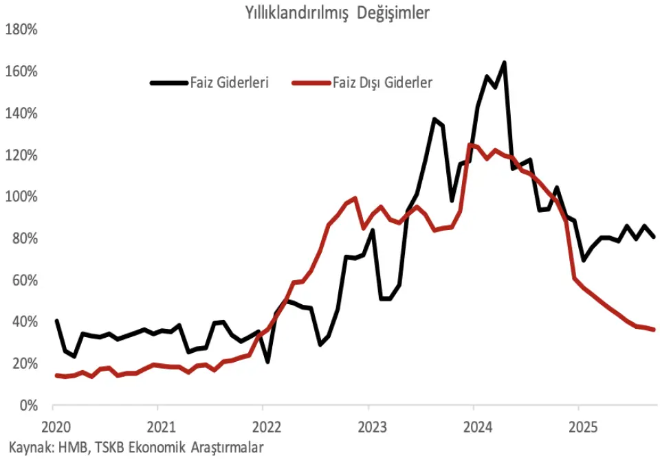 Eylül ayı verilerinin detayları, gelirler tarafında alt kalemlerdeki aylar arası kaymalar nedeniyle yavaşlamayı ortaya koydu. Faiz giderlerinin artış hızında dalgalı seyir sürerken, faiz dışı harcamalarda daha yatay bir seyir görülüyor.