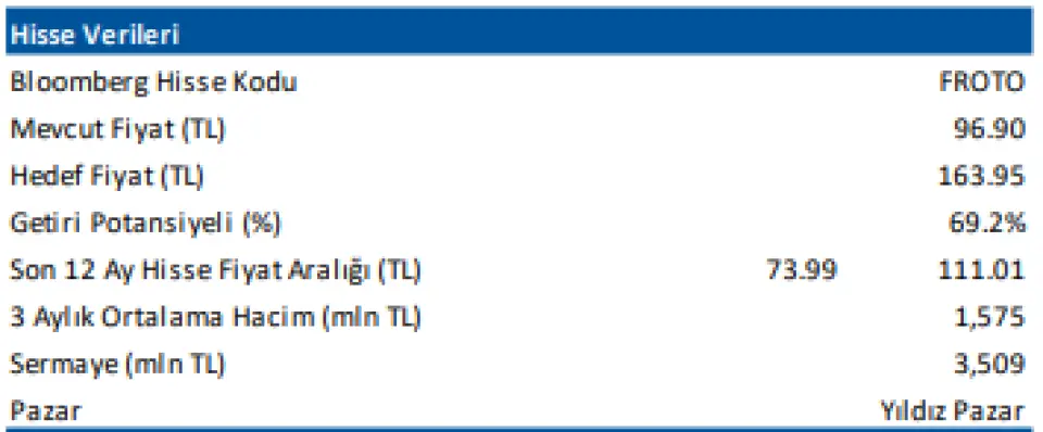 Deniz Yatırım açıklanan ihracat rakalarına göre FROTO ve TOASO için hedef fiyatlar tespit etti. Kurum FROTO için 163,95 TL hedef fiyat tespit etti ve %69,2 kazanç potansiyeli açıkladı.