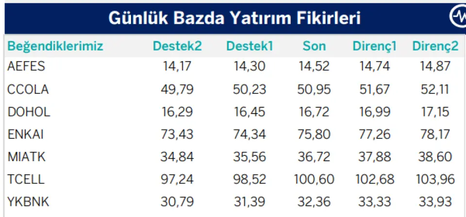 Böylece Garanti BBVA tarafından 30 Ekim 2025 tarihinde paylaşılan yatırım fikirleri raporunda AEFES, CCOLA, DOHOL, ENKAI, MIATK, TCELL ve YKBNK hisseleri yer almış oldu.