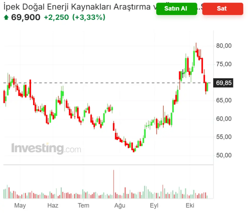 İpek Doğal Enerji Kaynakları Araştırma ve Üretim A.Ş. (IPEKE), 2025 yılı ikinci çeyrek bilançosunda net karını -229.730.000 TL olarak açıkladı. Net kâr 2024 yılının ikinci çeyreğinde -251.096.000 TL olarak açıklanmıştı.Işıklar Enerji ve Yapı Holding A.Ş. (IEYHO), 2025 yılı ikinci çeyrek bilançosunda net karını -210.445.000 TL olarak açıkladı. Net kâr 2024 yılının ikinci çeyreğinde -239.009.000 TL olarak açıklanmıştı.