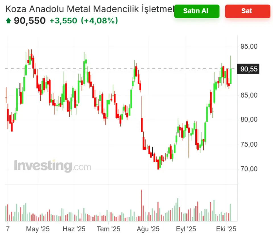 Koza Anadolu Metal Madencilik İşletmeleri A.Ş. (KOZAA), 2025 yılı ikinci çeyrek bilançosunda net karını 921.295.000 TL olarak açıkladı. Net kâr 2024 yılının ikinci çeyreğinde -489.918.000 TL olarak açıklanmıştı.