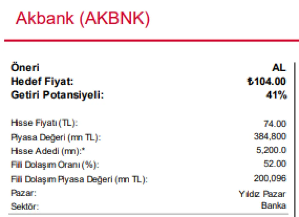 Global Menkul'ün Seçtiği Tek Banka Hissesi! %41 Kazanç Sağlayacak! Global Menkul'ün 2026 yılı model portföyünde yer verdiği tek banka hissesi olan AKBNK için hedef fiyat tespit edildi.