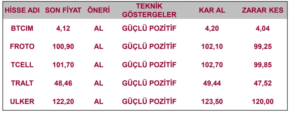 İlgili öneri listesinde toplam 5 hisse yer aldı:- BTCIM