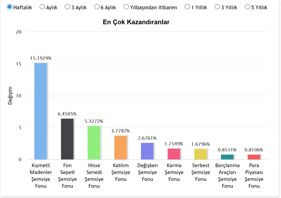 Dikkat! Haftalık Kazandıran Fonlar Arasında 1. Kıymetli Madenler Fonları Oldu!