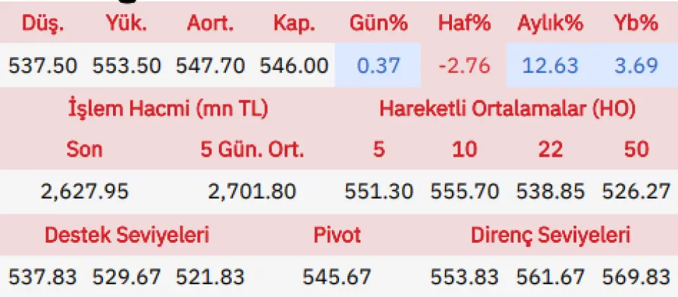 "Günü yükselişle açan Bim Mağazalar gün içinde 537.50 seviyesine gerilerken en yüksek ise 553.50 seviyesini gördü ve günü açılışına göre %1.49 yukarıda önceki güne göre de %0.37 yukarıda tamamladı.Gün içinde şirket için ilk destek noktamız 537.83 ikinci destek noktası da 529.67 seviyeleri olacak, direnç bölgesi olarak da 553.83 ve 561.67 seviyeleri takibimizde olacak."