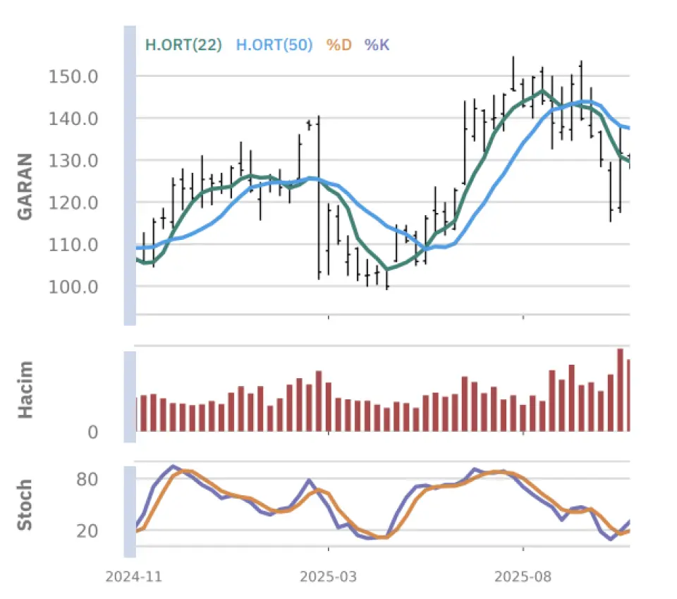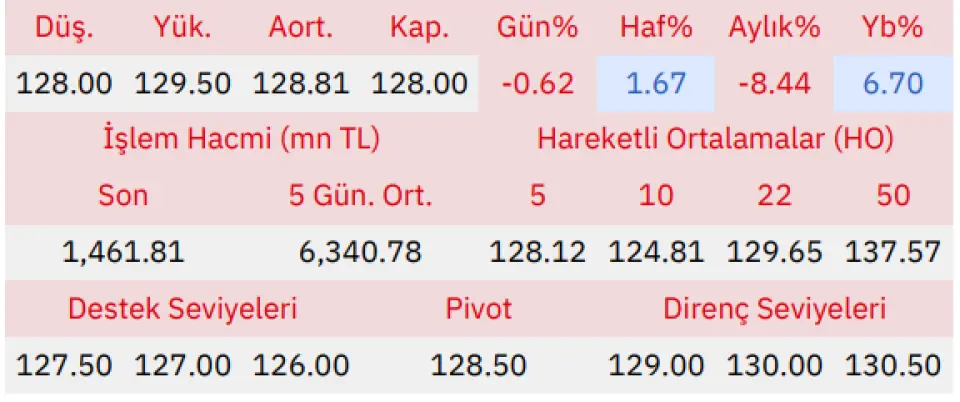 "Gün içinde en düşük 128.00 en yüksek 129.50 seviyesini gören Türkiye Garanti Bankası hissesinin günü %0.62 kayıpla tamamladığı gözlenmektedir. Pivot seviye 128.50 seviyesinden geçmekte olup, aşağı yönlü hareketlerde birinci destek 127.50, ikinci destek ise 127.00 seviyesinden geçmektedir. Dirençler ise sırasıyla 129.00, 130.00 seviyelerinden geçmektedir. Bu aşamada endeksin 5 günlük HO seviyesinin %0.09 altında, 22 günlük HO seviyesinin ise %1.28 altında hareket ettiği dikkat çekmektedir. Son gün işlem hacmi ise bu aşamada 5 günlük ortalama işlem hacminin % 76.95 altında gerçekleşmiştir"