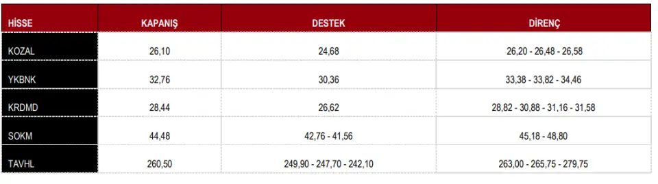Listedeki hisseler: