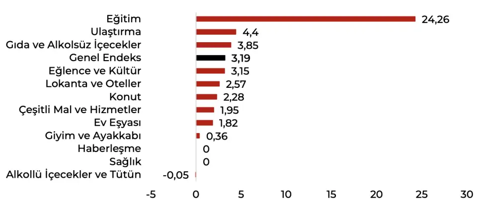 "Ayrışmanın aslında dolaylı yoldan genişlediğini gösteren bir veri seti takip ediyoruz. Eğitim enflasyonunda artış oranı yüksekliği doğal olarak enflasyonun İTO özelinde %3, TÜİK özelinde %2 üzerinde kalmasına neden olacaktır."