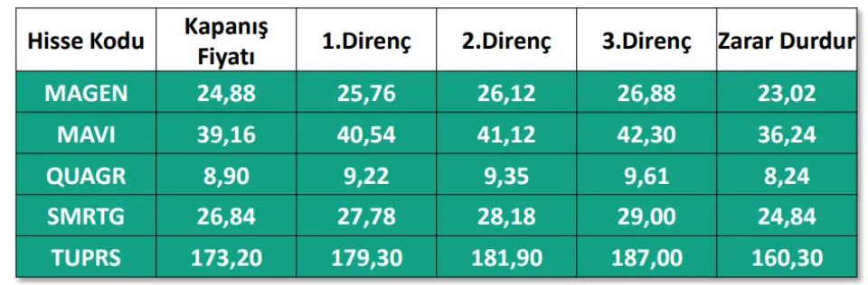 Haftalık Hisse Takip Listesi (20 - 24 Ekim 2025)
