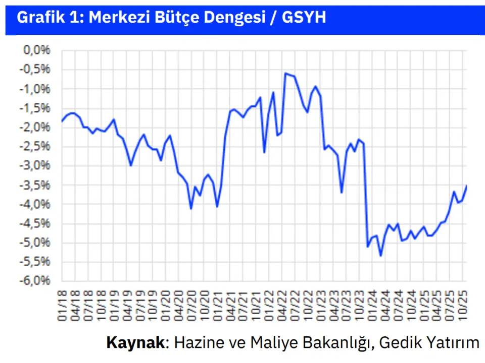 Gedik Yatırım 15 Aralık 2025 tarihinde kasım ayı için merkezi bütçeler raporunu paylaştı. Raporda TCMB'nin açıkladığı veriler üzerinden yorumlamalar yapıldı: